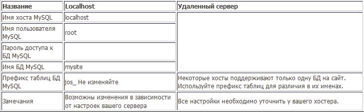 Настройка Joomla! для подключения к базе данных MySQL. Вам необходимо правильно заполнить следующие поля: