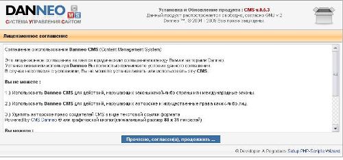 1) После установки danneo удалите директорию setup с Вашего сервера. Это обеспечит Вам некую безопастность в работе.