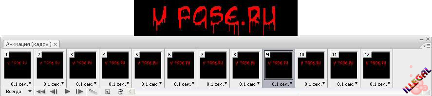 6. Анимация готова, вы уже решаете, какой промежуток будет между кадрами, у меня (0,1 сек) вышло следующее: