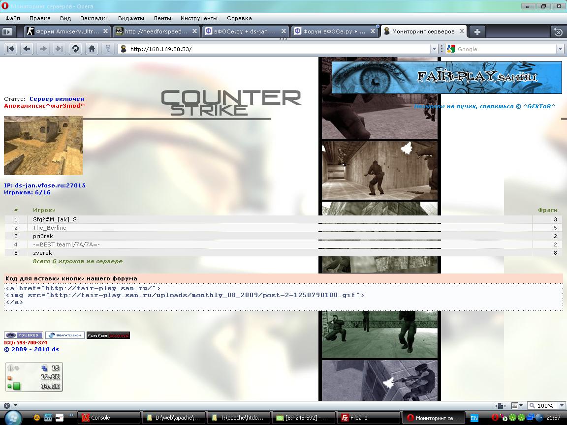 ds-jan писал(а):слуште.Есть вот самописный мониторинг кс серверов.Показывает название количество слотов игроков.ники и фраги и картинку карты.Как можно вывести нужные мне данные на картинку?Если поможете то открою мониторинг кс серверов с юзербарчиками)