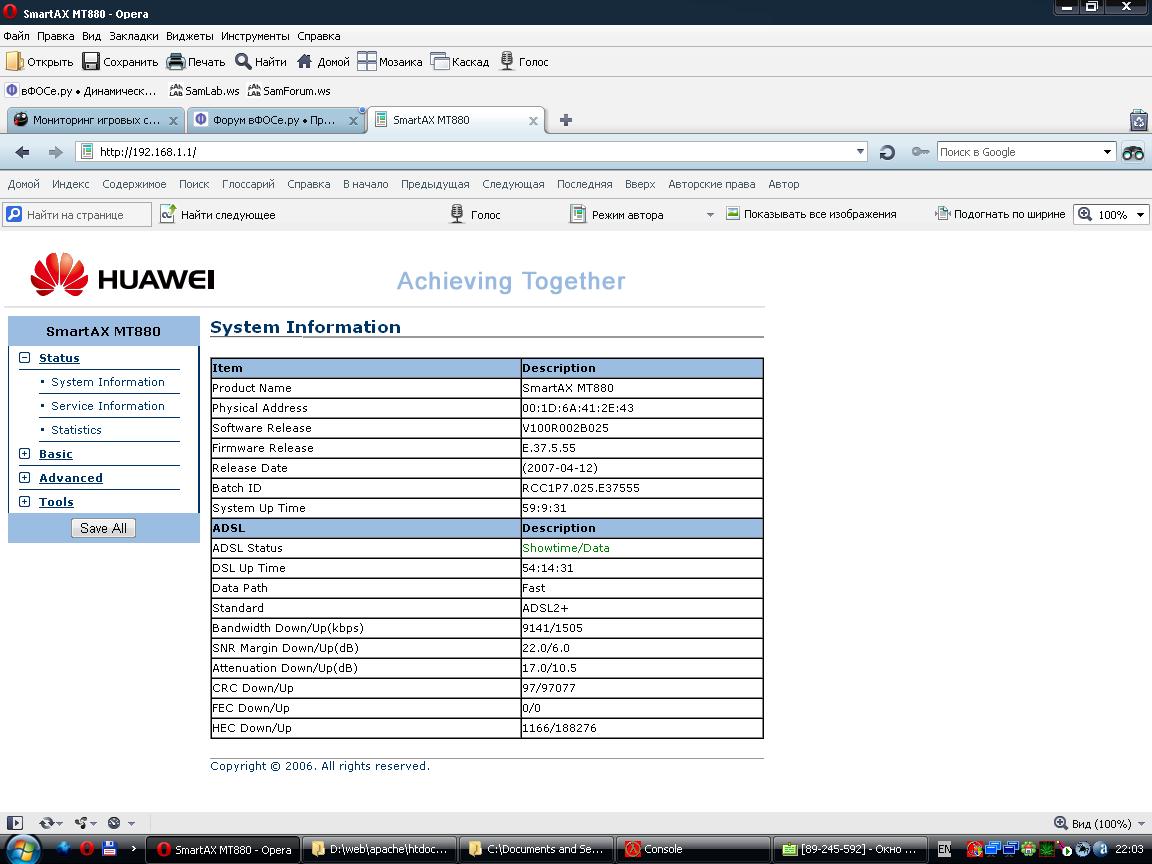 Поэтому и говорю, что только из-за модема больше выжать не могу.Описание: aDSL модем HUAWEI SmartAX MT882