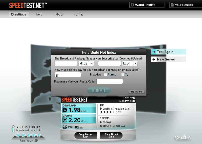 vk писал(а):Пока не создали ни один тестер скорости который бы показывал с точностью хотя бы 90%.