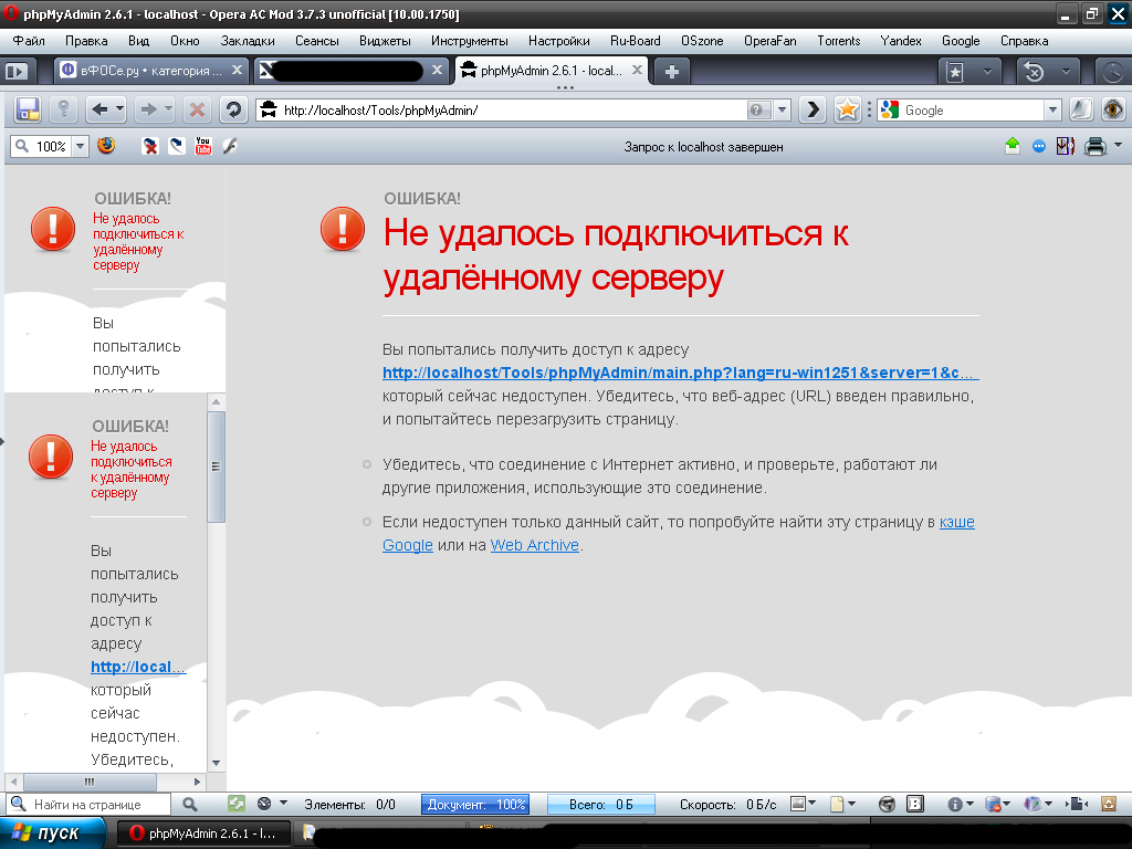 Привет все!У меня такая проблема тупит чёто денвер ресурс не запускается,phpMyAdmin не работает хотя в титлах пишет(смотрите скрин).Подскажите как исправить. И возможно ли востановить хотябы БД!!