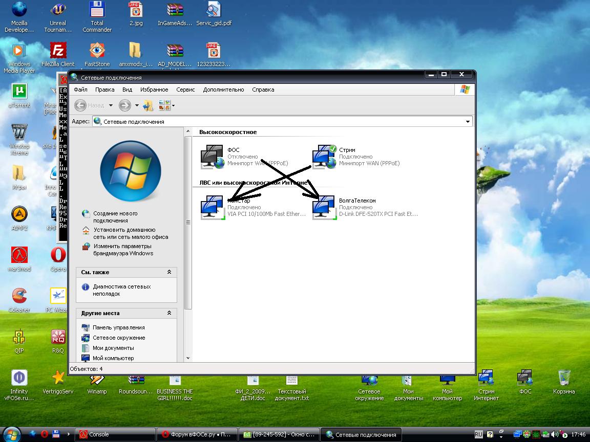 На скрине мне видно.Я хочу чтоыб фос подключался через одну сетевуху а комстар через другую.А у меян только одно что может подключаться.Теперь я думаю я яснее высказался