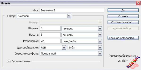 1. Создаём документ 3х3 пиксела, прозрачный...