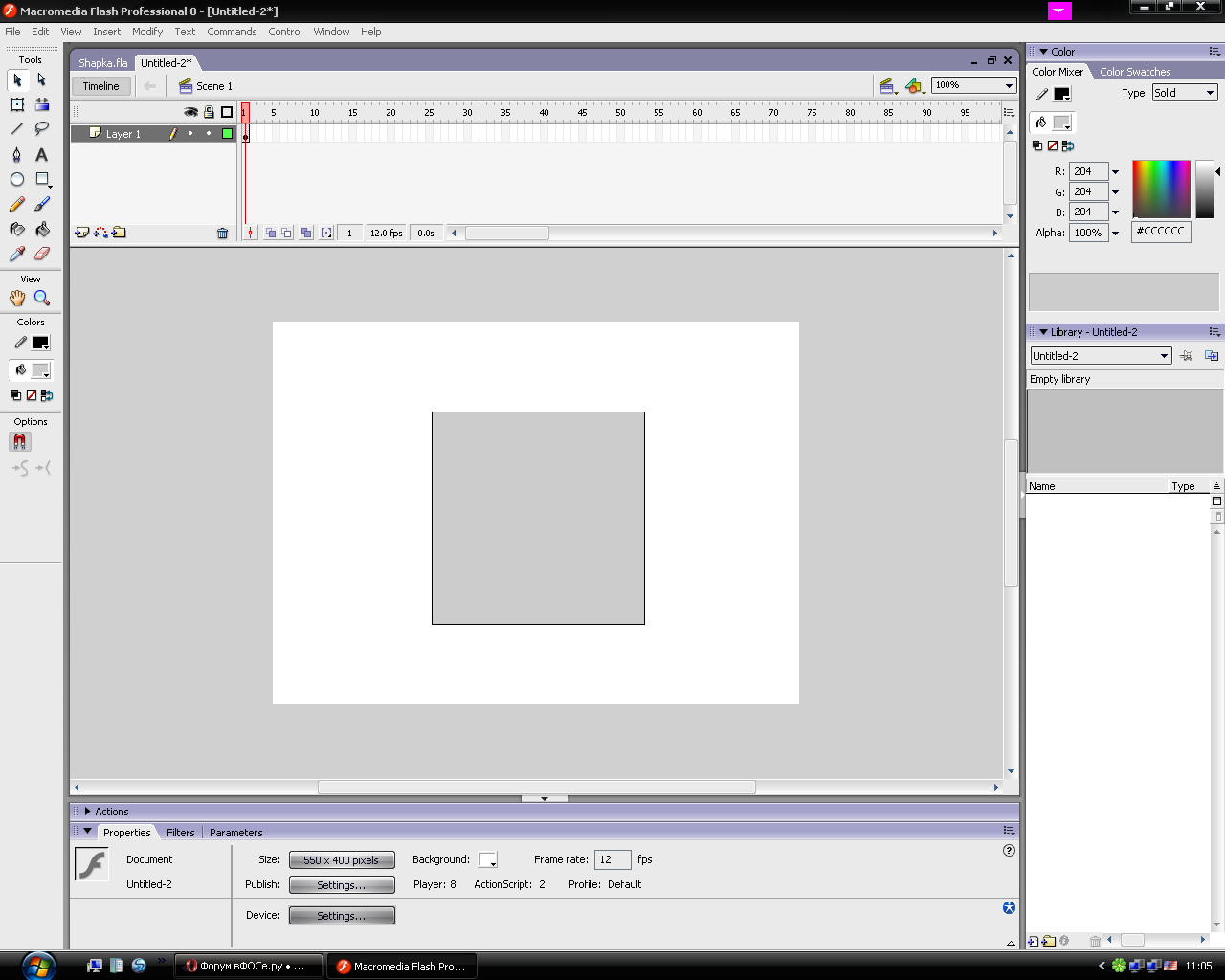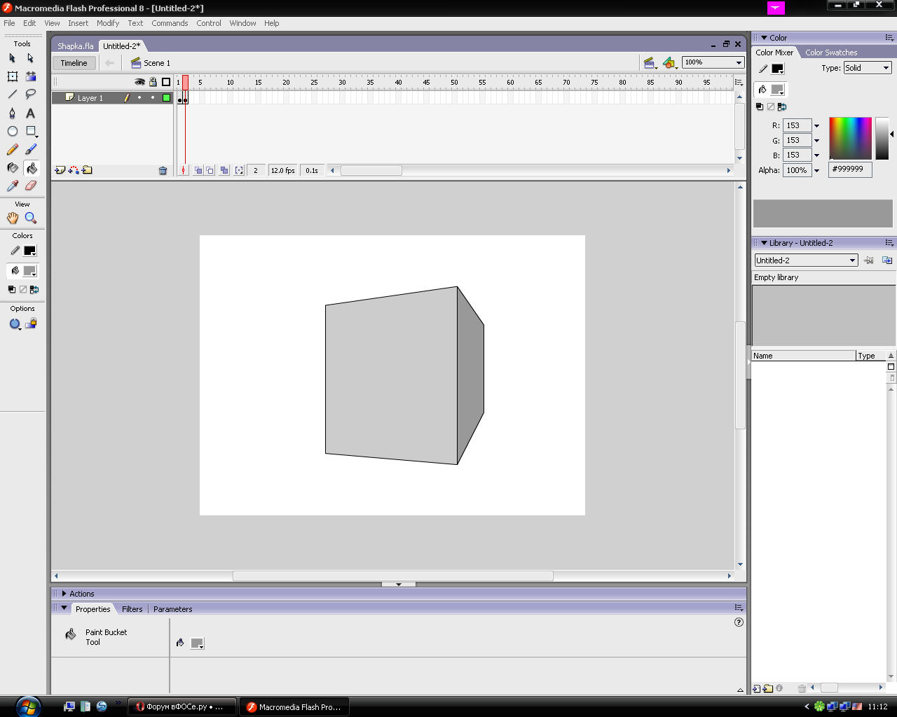 Сегодня попробуем создать "3D" вращающийся куб, вообще в Flash 8 3D - анимации нет. Появилась она в адобовской версии, и то не полная. Для начала постройте простой квадрат