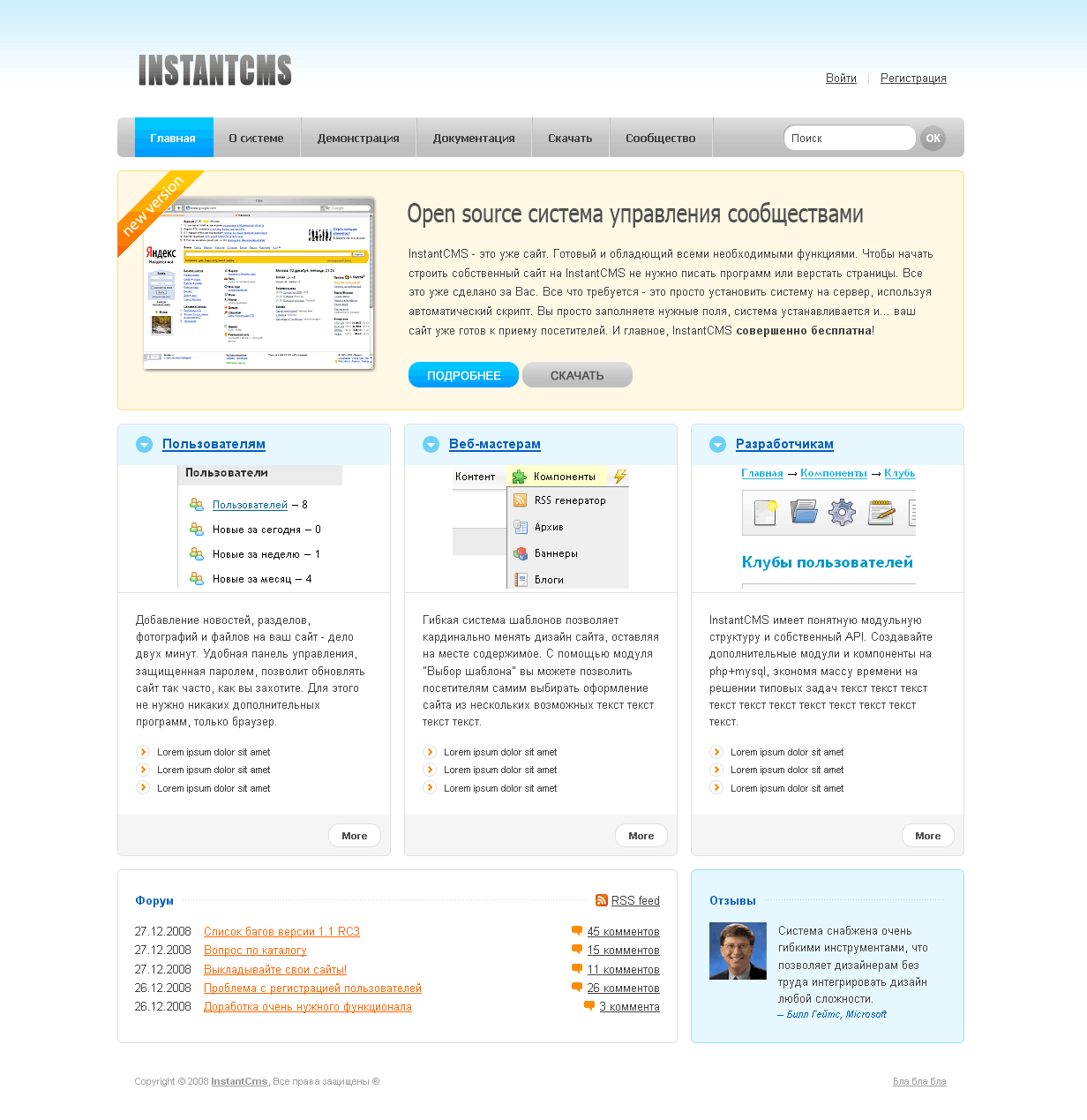 Установку описывать не буду: ничего нового и никаких открытий (сам ставил на VertrigoServ). В конце установки спрашивает: чистую ставить или с демо данными... С демо данными можно посмотреть возможности.