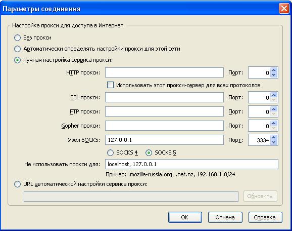 5. Узел SOCKS 127.0.0.1 и порт указанный вами ранее (3334 в примере)