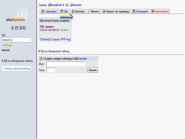 Как работать с MySQL, phpMyAdmin и создовать базы читайте тут viewtopic.php?t=42