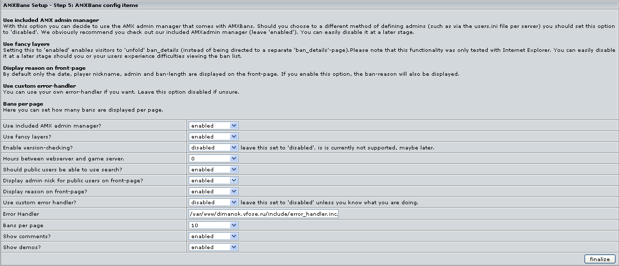 Сохраняем , закрываем. Настройка amxbans на стороне серверной части законченна , устанавливаем web-часть.