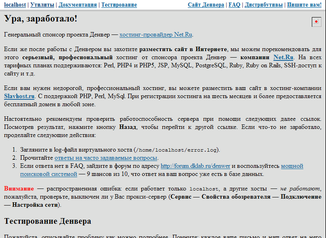 который можно в дальнейшем расширять по мере надобности. Денвер больше ориентирован на отладку приложений,